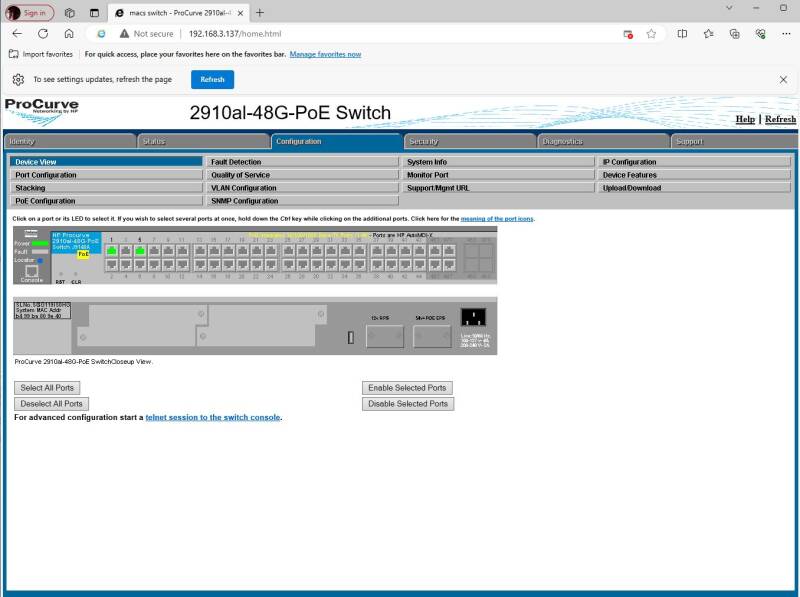 This is a 48 port gigabit switch, the POe does not work which is a known HP fault otherwise it works fine.